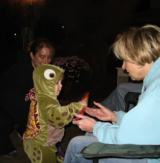 I was informed Sweetpea's costume was from Finding Nemo by a few little girls at this house - and here I thought she was just any old turtle!